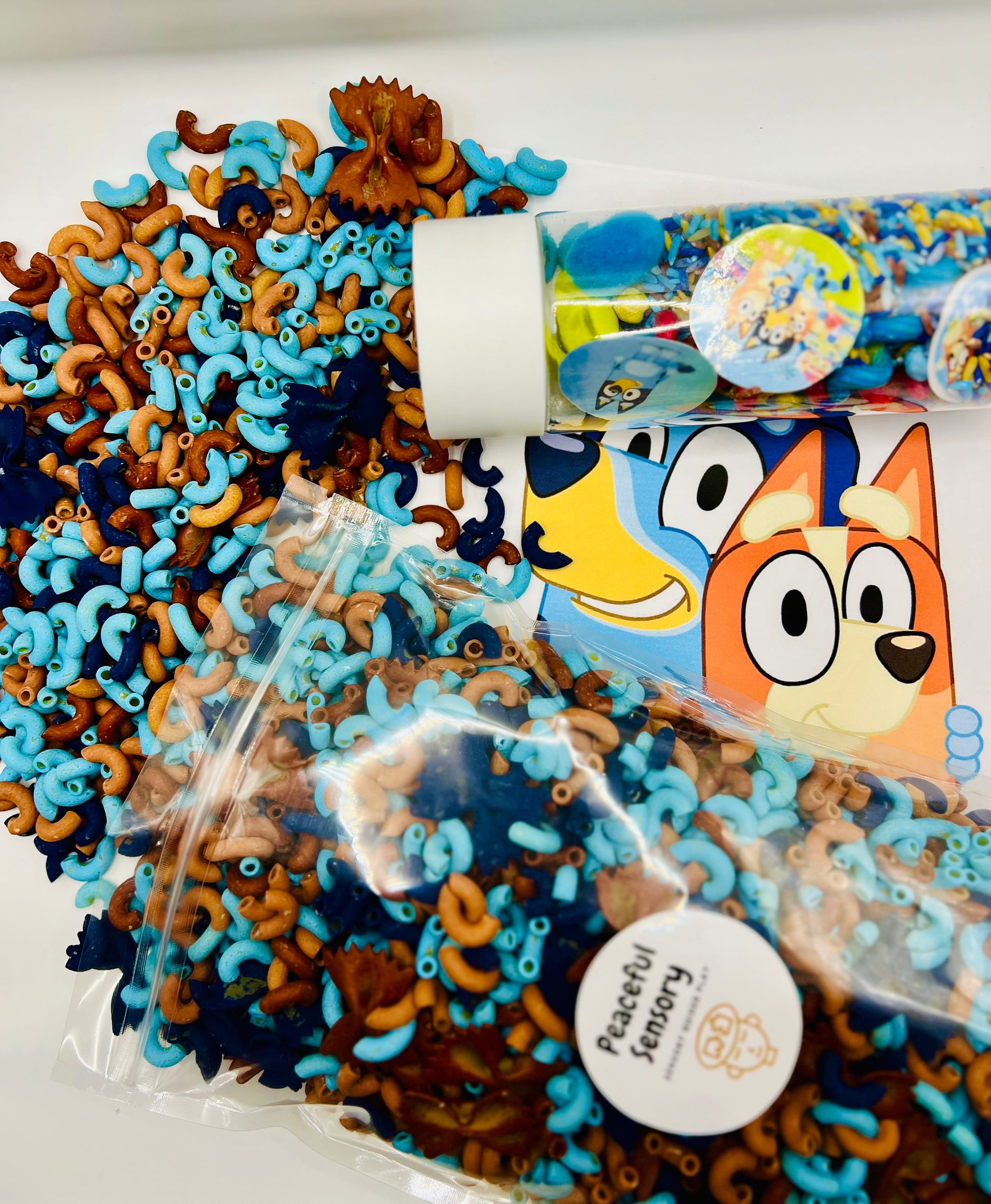This sensory Mix pairs well with the Blueyist Blue Shaker (pictured, sold separately)