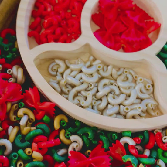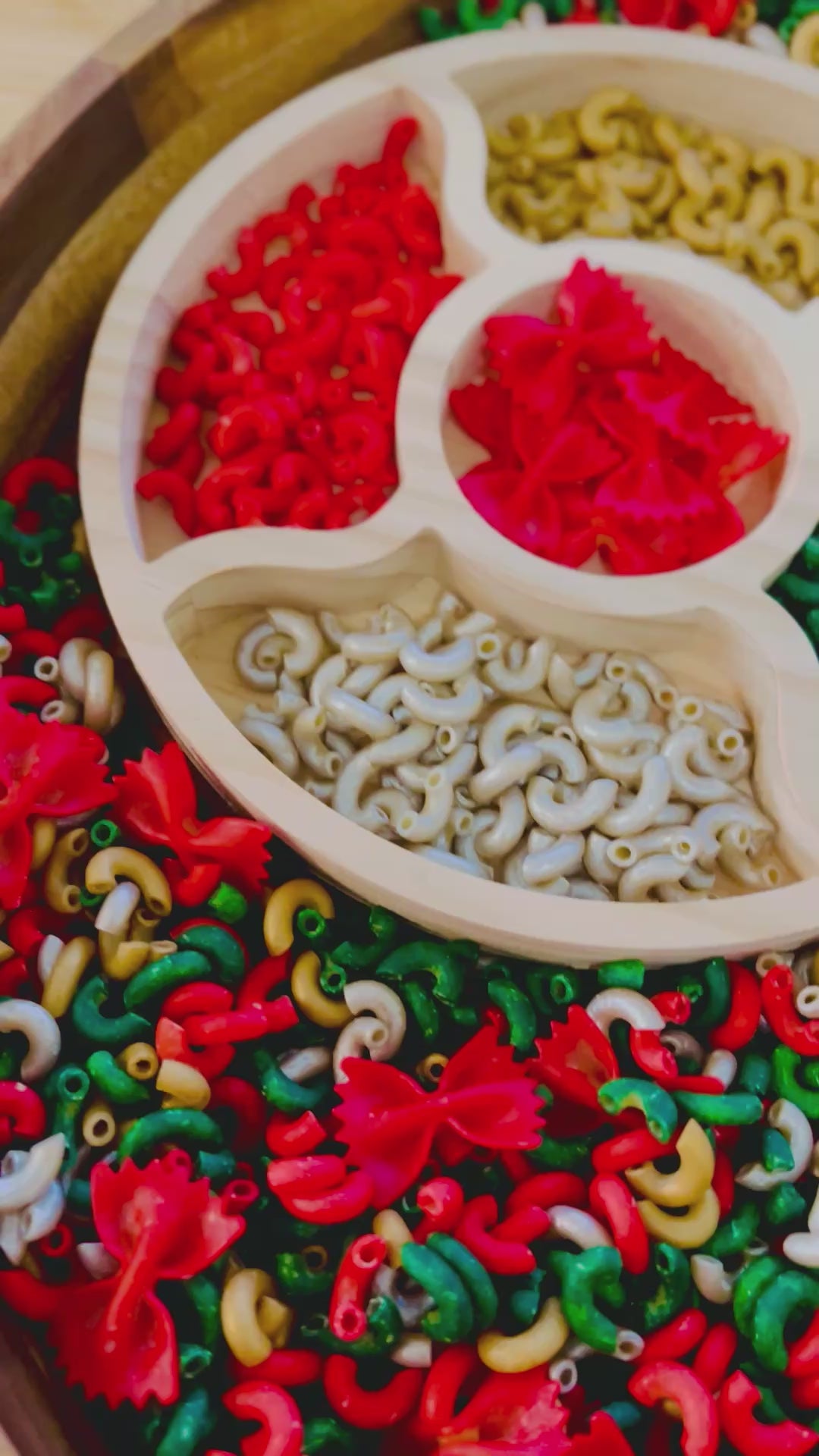 This Mix includes colored dried pasta, and rice intended for sensory play