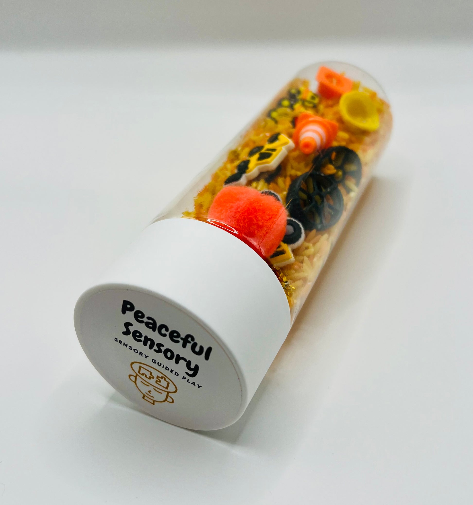 Construction Sensory Shaker (10oz, soft plastic jar)