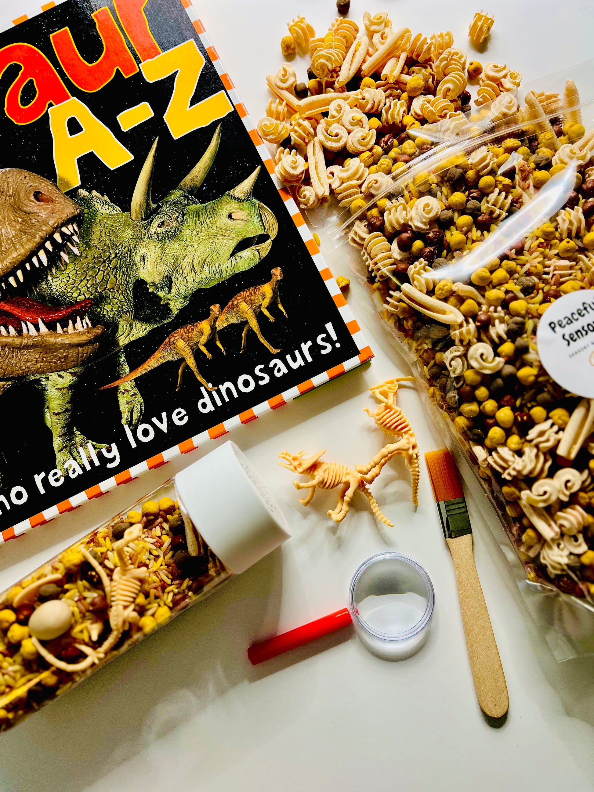 This Shaker Pairs well with the Dino Dig Sensory Kit (pictured, sold separately)
